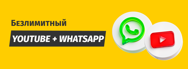 «Чексиз YouTube+WhatsApp» кызматы YouTube жана WhatsApp  үчүн чексиз трафикти сунуштайт.