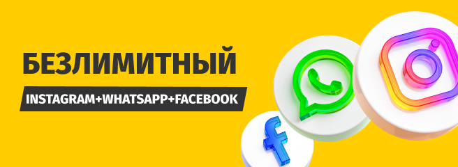 Услуга «Безлимитный Instagram+WhatsApp+Facebook» действует только при оплаченной абонентской плате по тарифу.