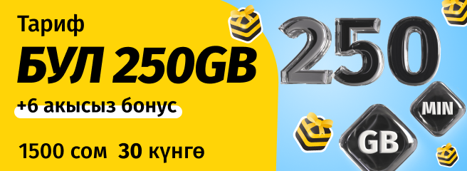 «Бул 250 GB» тарифинде 6 акысыз бонус жеткиликтүү.