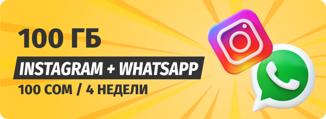 Пакет не доступен на тарифах: Жаны Бирге для звонков, Жаны Бирге для звонков неделя, Бирге для звонков, Бирге для звонков неделя, Бирге безлимит, Бирге безлимит неделя, Включай звонки, Включай звонки неделя, Жаны Включай звонки, Жаны Включай звонки неделя, Platinum, Жаны Включай Больше, Жаны Включай Больше неделя, Бирге безлимит Premium, Бирге для интернета неделя + Instagram, Умное устройство, Стартовый, Базовый, Супер Укмуш+, Старт, Начало, Старт+, Начало+, Мир на связи, Включай, Беш сомдук, а также на акционных пакетах «Включай».